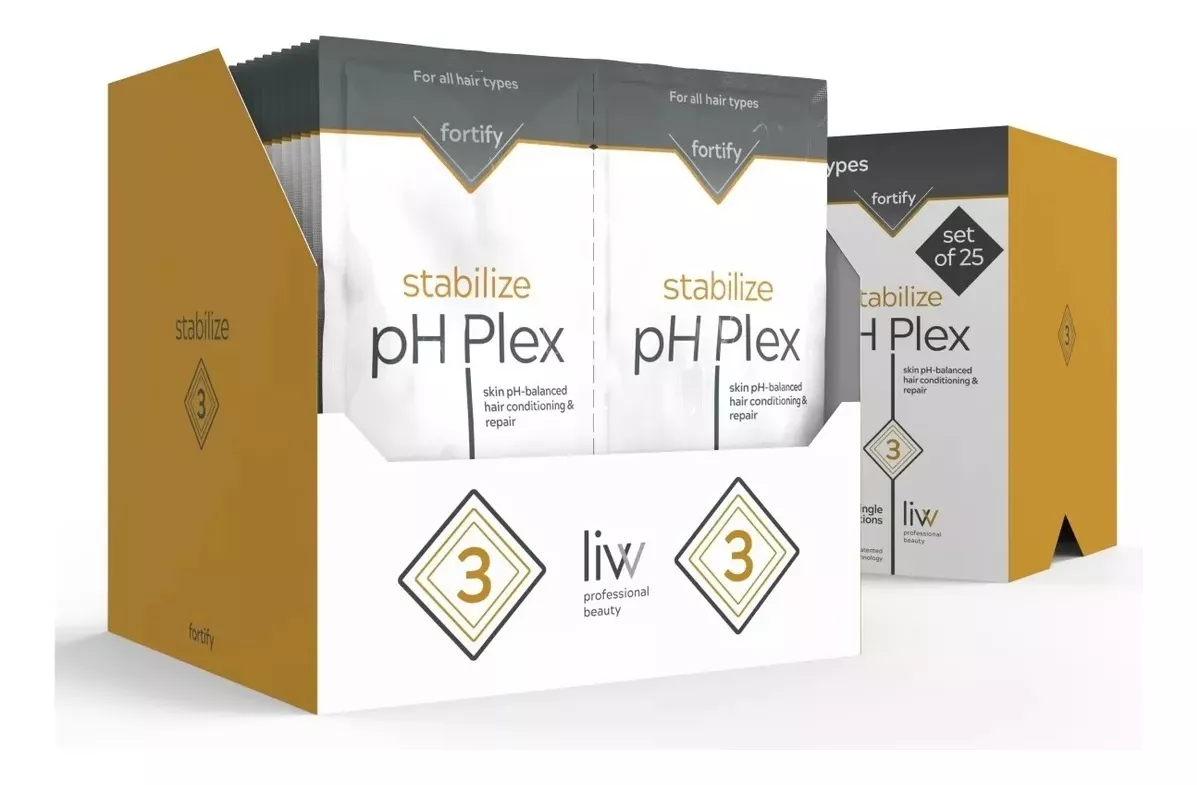 Contém: 25 sachês duplos com pH Plex Passo 3 Stabilize.
